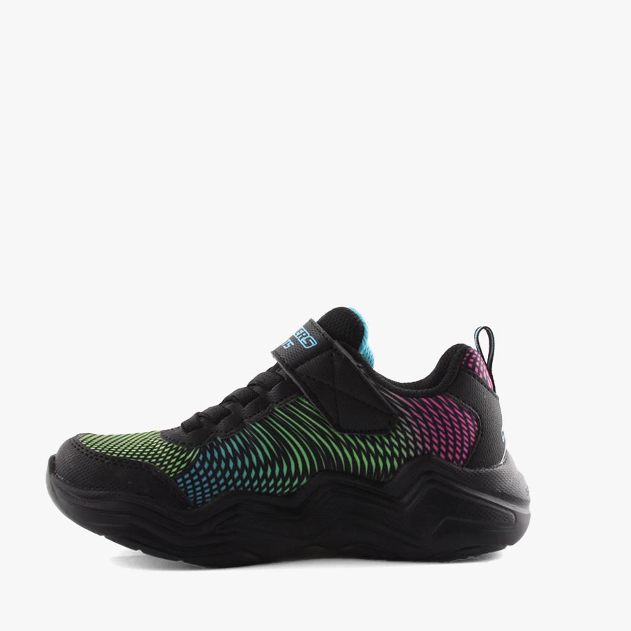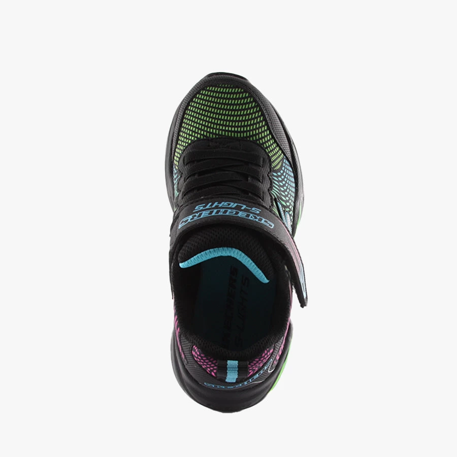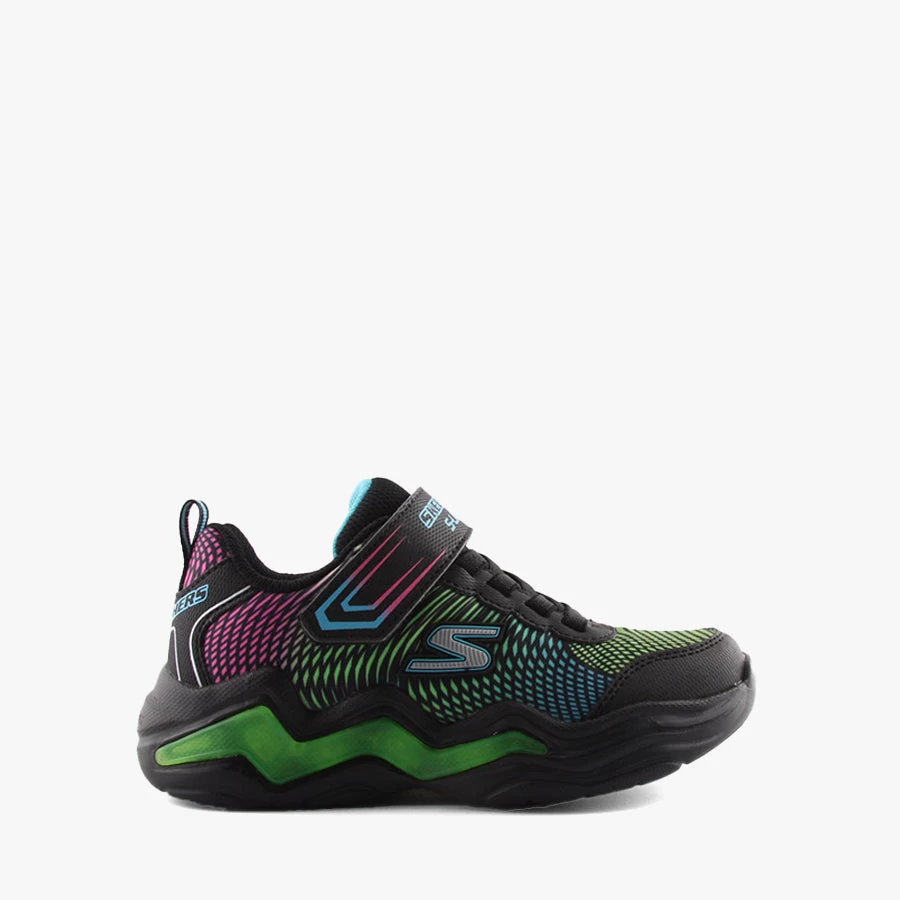 Erupters IV by Skechers is a kids sneaker that features an elastic bungee lace, velcro strap closure, and vibrant light up sole.