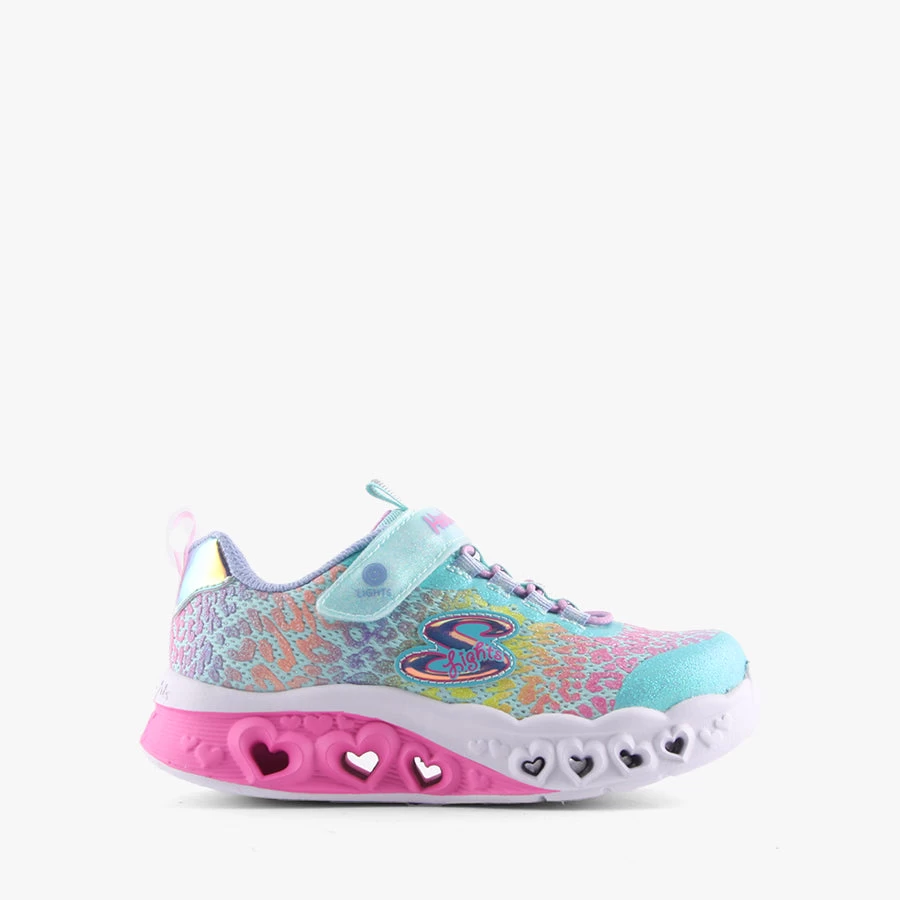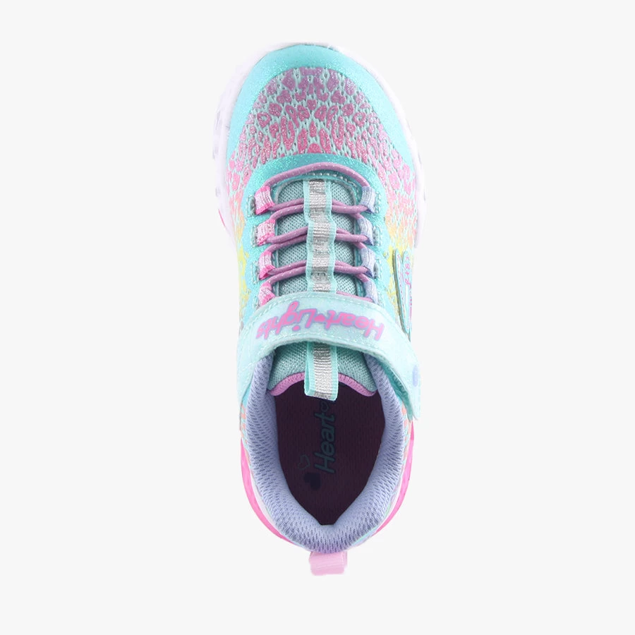 FHL Loves Wild by Skechers is a kids light up sneaker that features an elastic bungee lace, velcro strap closure and light up sole with an on/off switch.