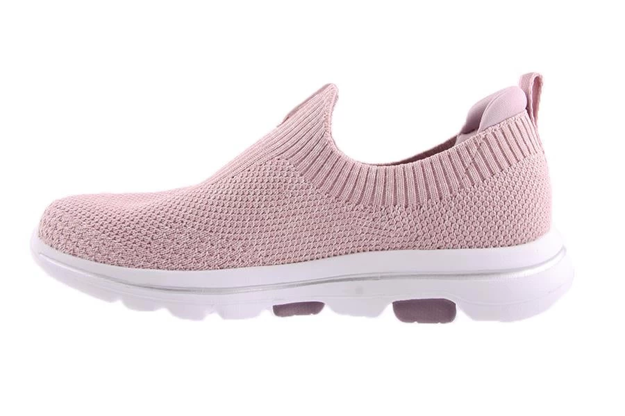 Go Walk 5 Trendy by Skechers is a woman’s slip-on sneaker style with a comfortable woven stretch fit upper, signature Goga mat insole and padded collar for extra comfort.