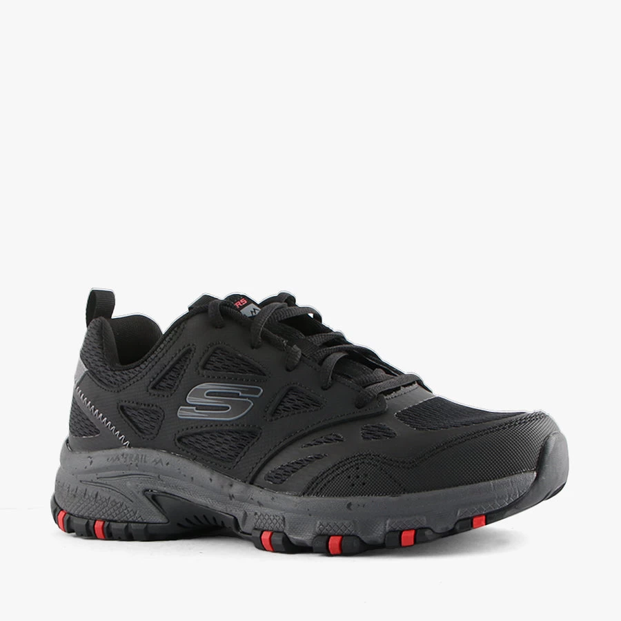 Hillcrest by Skechers is a mens sporty walking trail sneaker features a leather and mesh upper in a lace-up front, Memory Foam cushioned insole and speckled accent midsole.