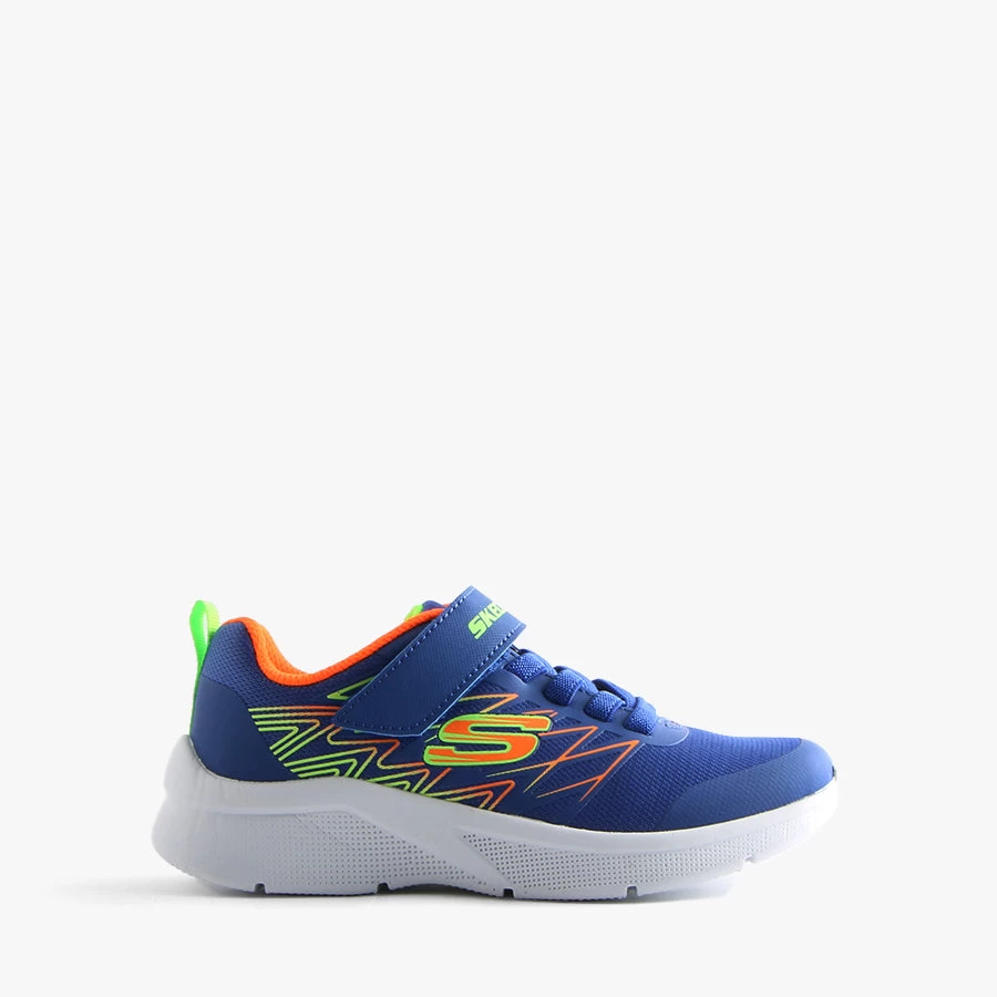 Micro Spec Texlor by Skechers is a kids sneaker that features a lightweight sole, elastic bungee lace and velcro strap closure.