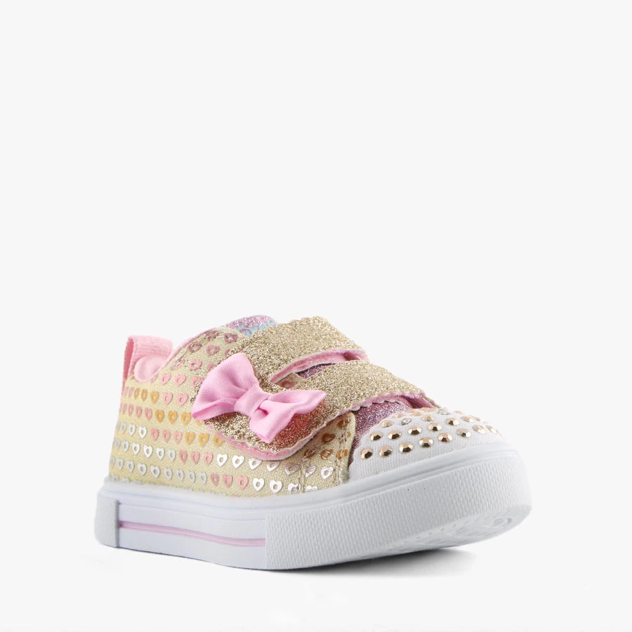 Twinkle Sparks Heart Dreamer is an infants sneaker that features a wide velcro strap and light up sparkles on the toe.