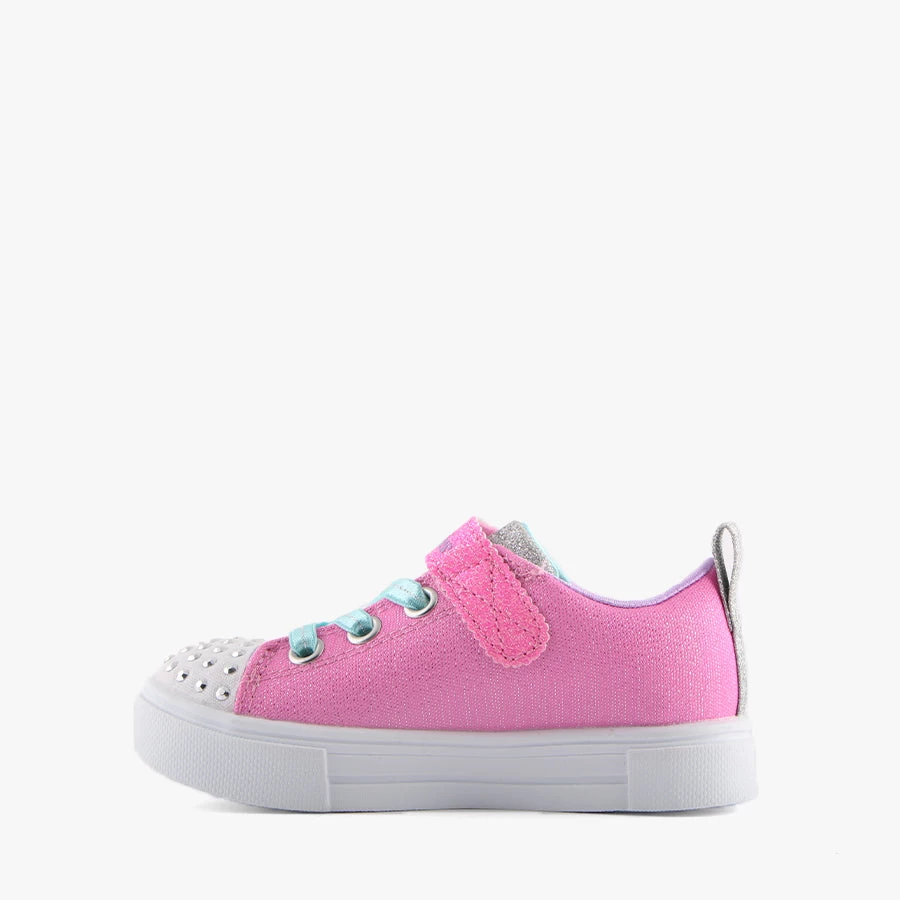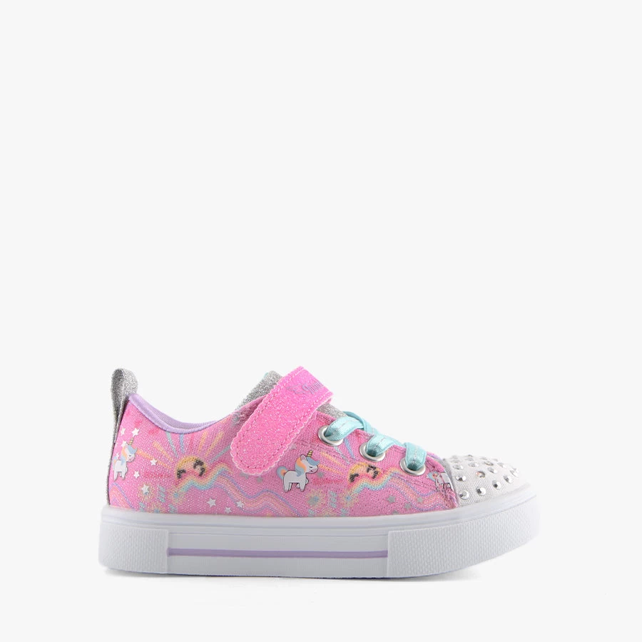 Twinkle Sparks Unicorn Sun by Skechers is an infants shoe that features a bungee elastic lace, velcro strap closure and light up sparkles on the toe.