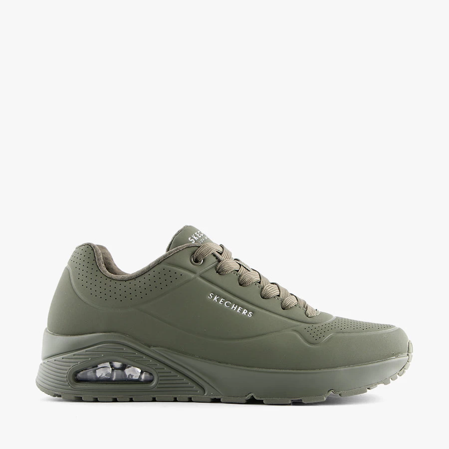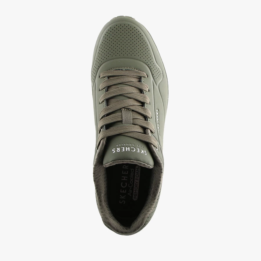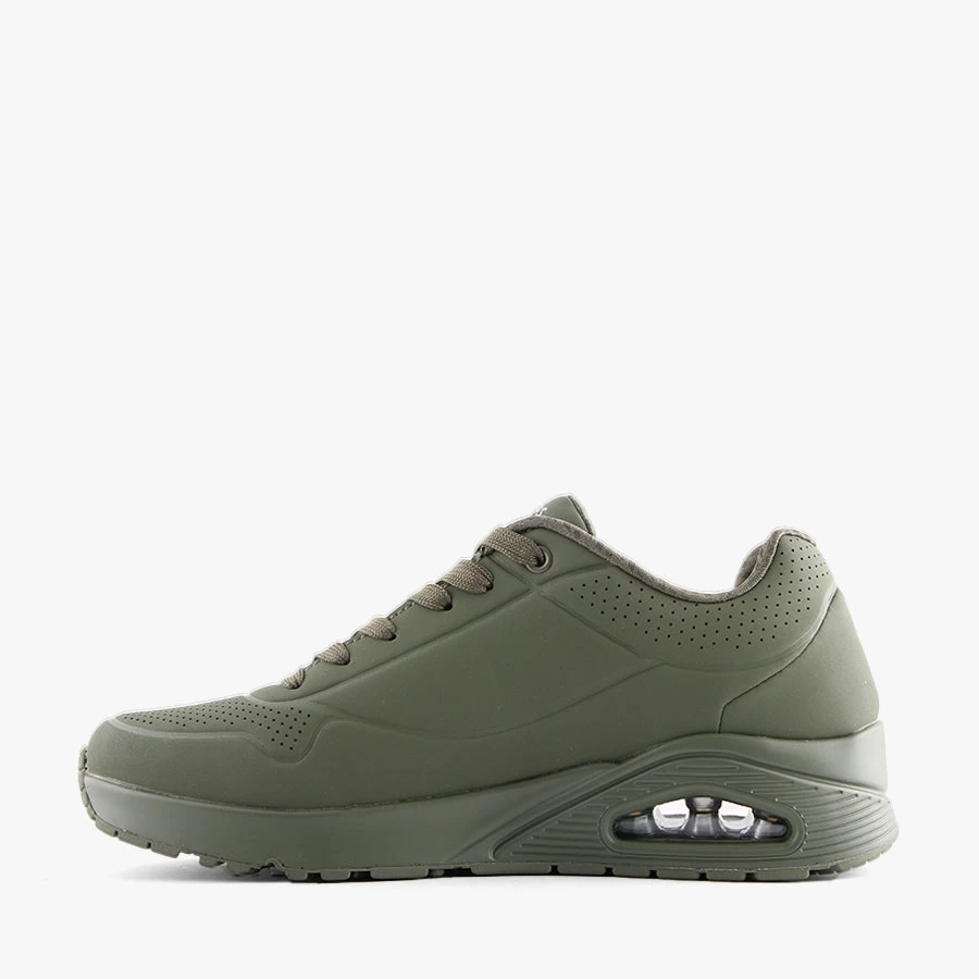 Uno – Stand On Air by Skechers is where comfort meets fashion. Uno is a men’s sneaker that features a padded collar and tongue, perforated details on the toe and collar with embossed accents on the heel and tongue. With an air cooled memory foam insole and an air cushioned shock absorbing heel pad you will be comfortable all day in Uno – Stand On Air.