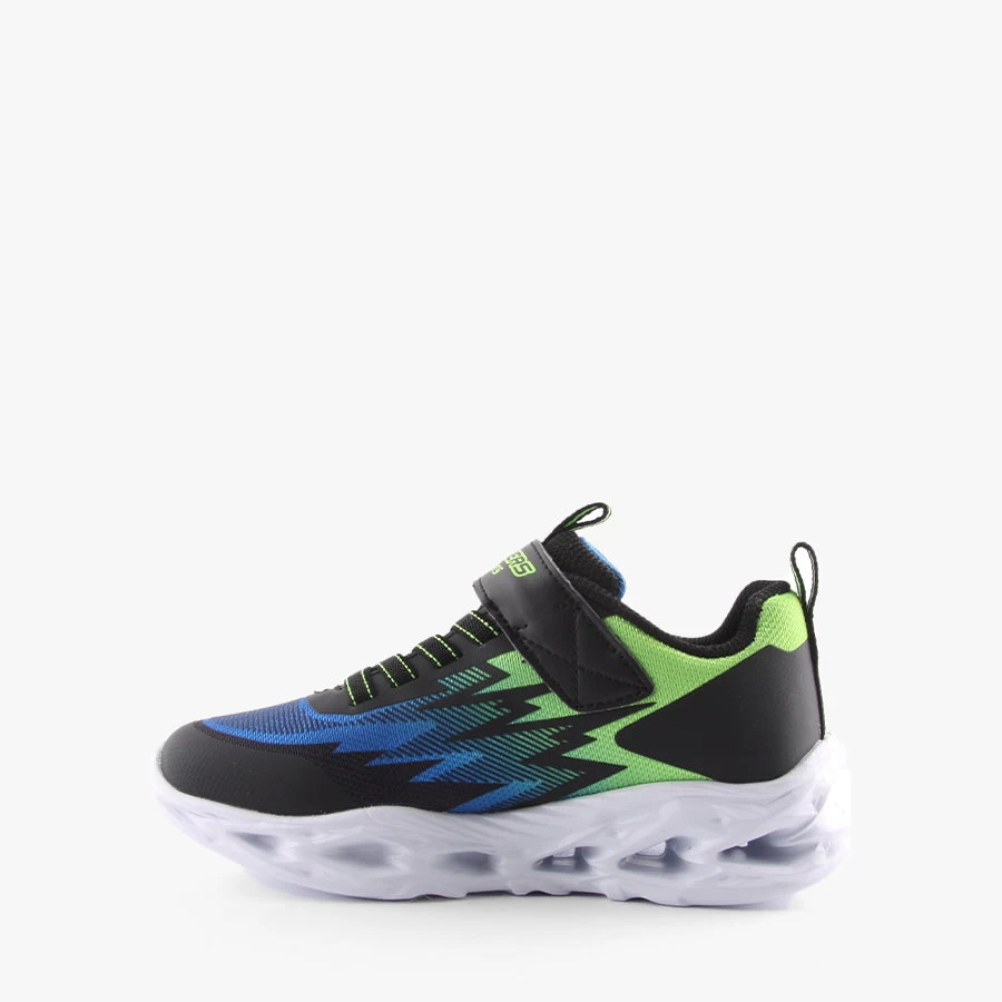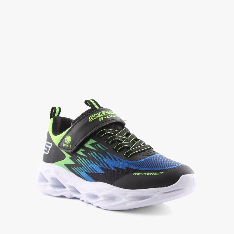 VF Zorent by Skechers is a kids light up sneaker that features an elastic bungee lace, velcro strap closure and light up sole with an on/off switch.