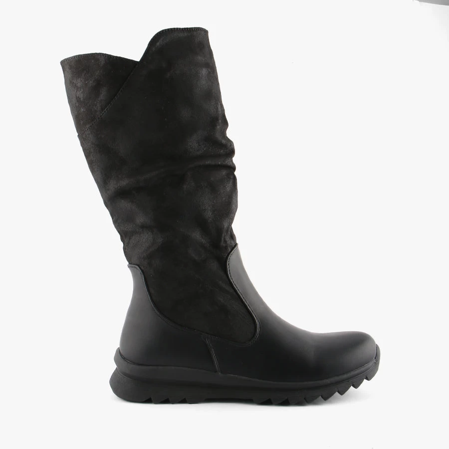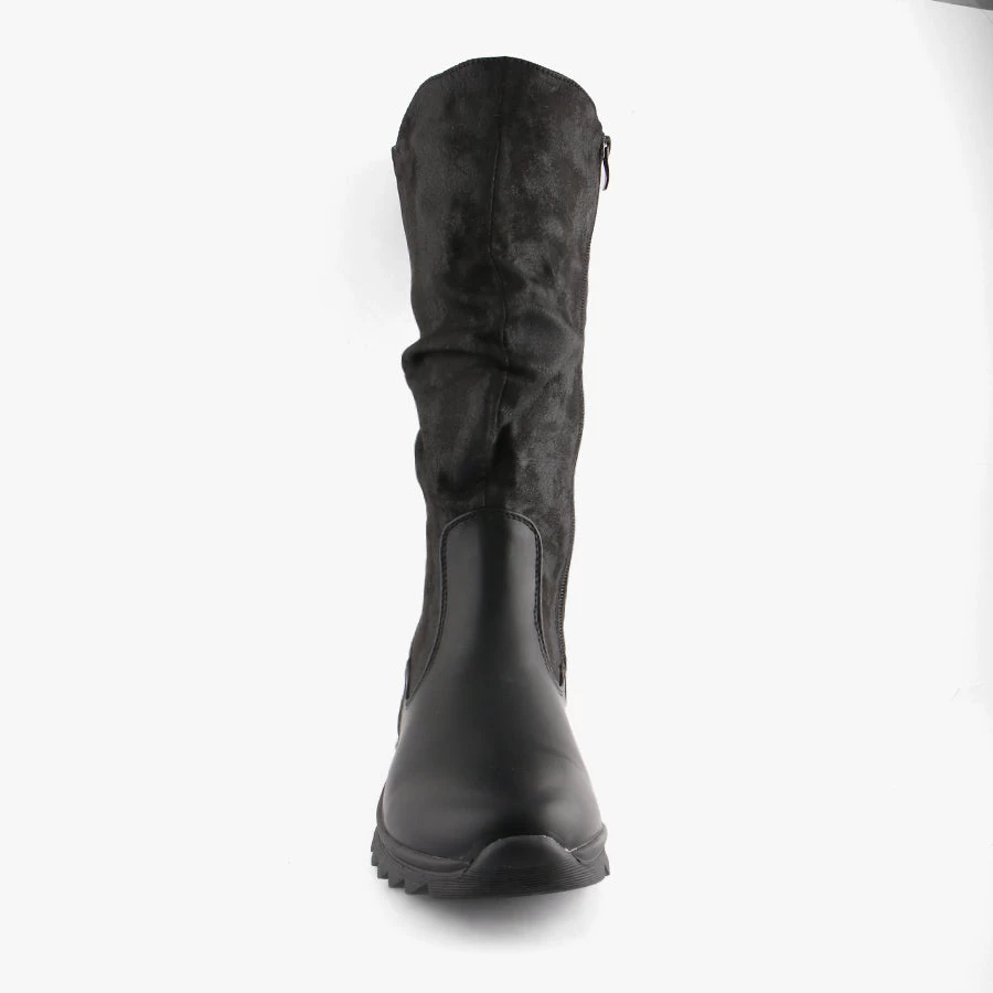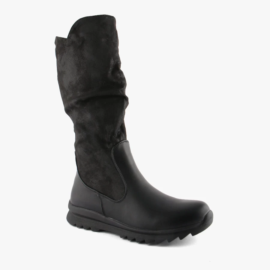 Socca by Bay Lane is a women’s mid length boot that features a comfortable flat sole, contrasting textures on the upper and a full length inside zip for easy wear.