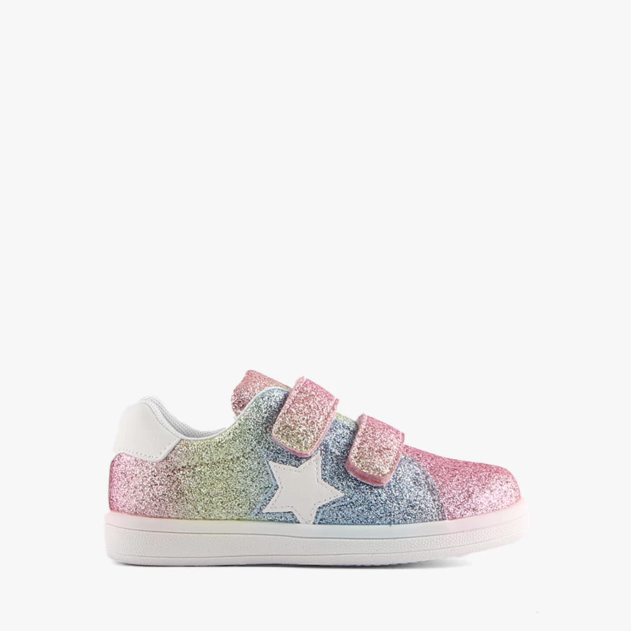 Spark by Grosby is an infants shoe that features a dazzling glitter upper and dual velcro straps for easy wear.