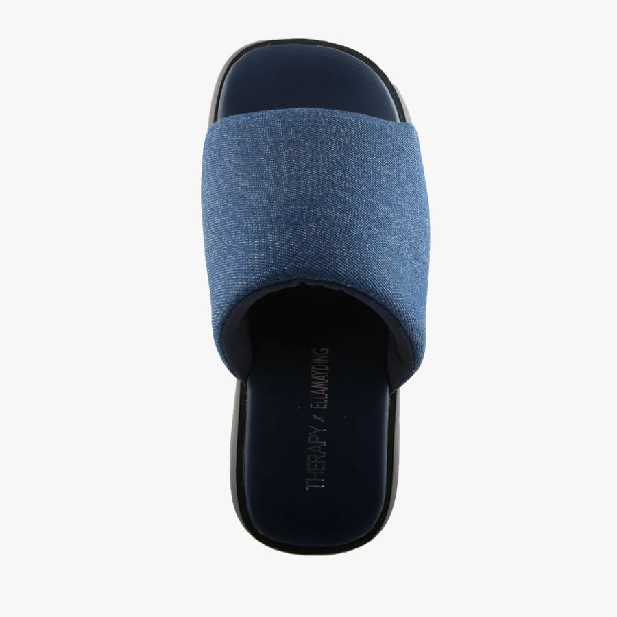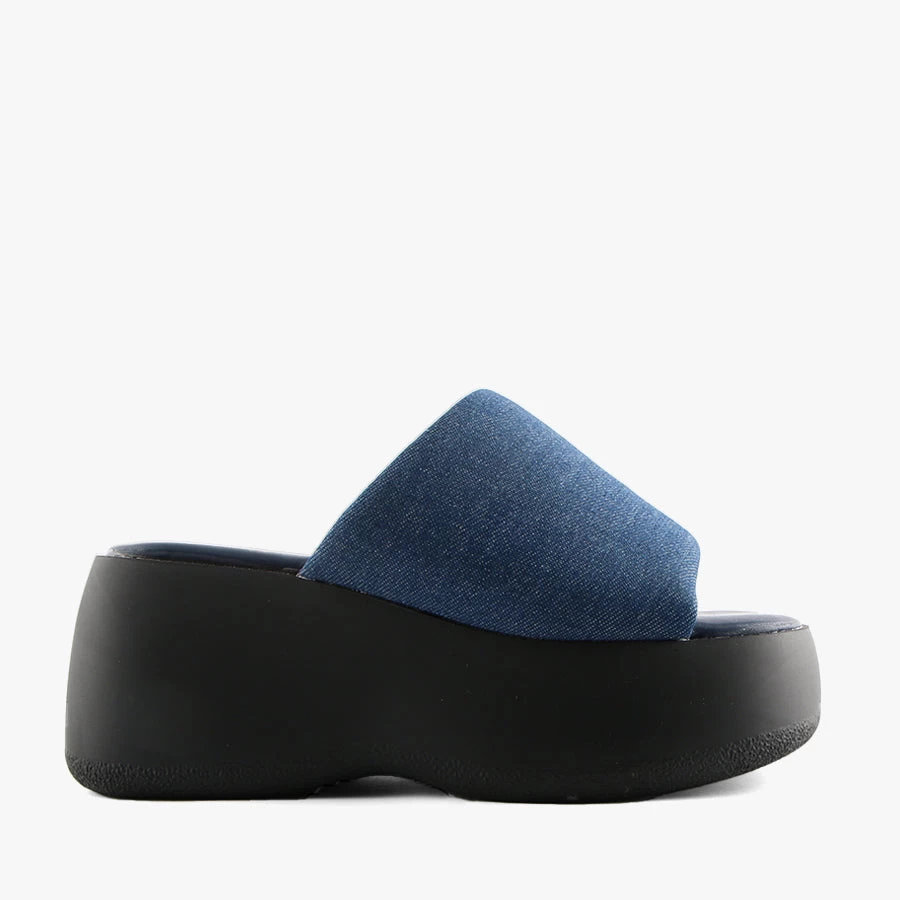 Stand out in Syd. This puffy styled platform slide features a padded insole and extra wide denim strap that is padded to the max for full comfort.