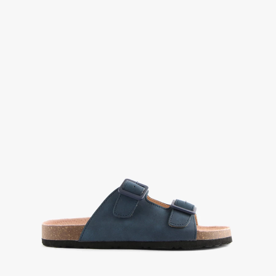 Lenni by Grosby is a kids slip on sandal featuring two adjustable buckle straps and a molded footbed for a comfortable fit.