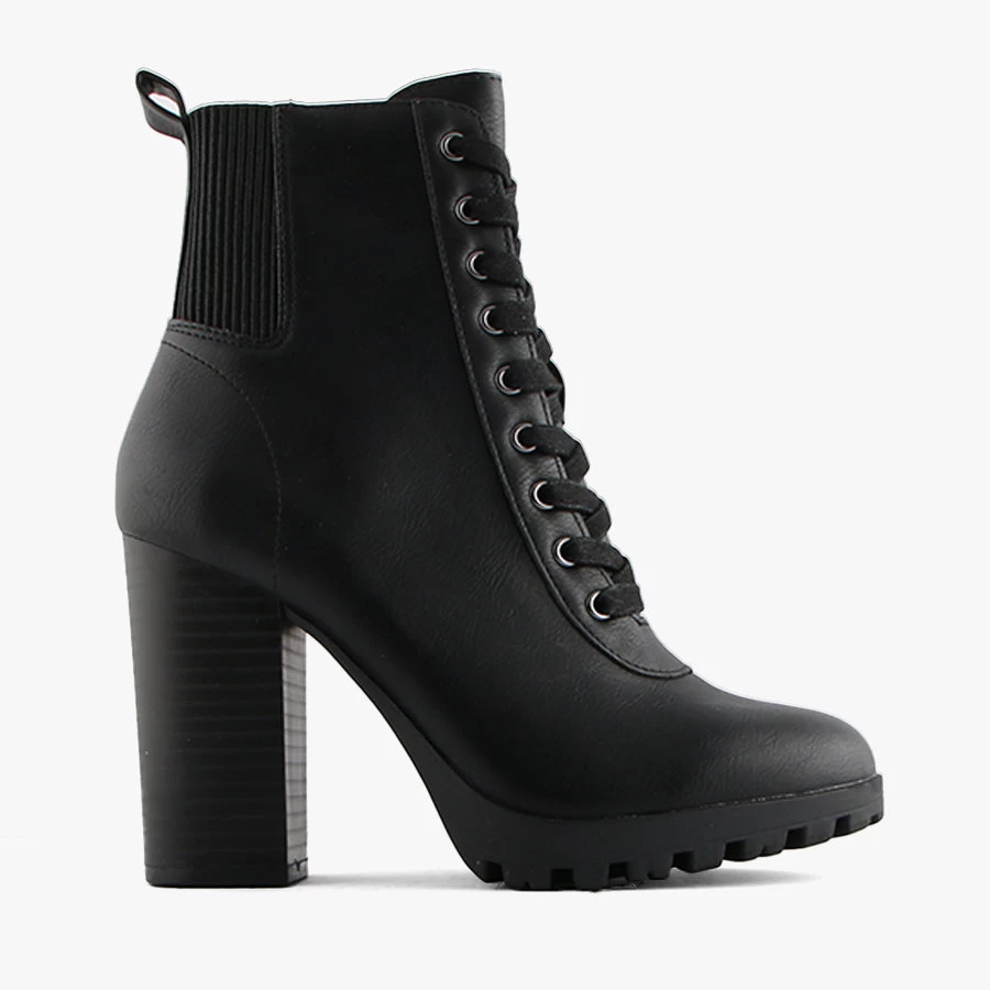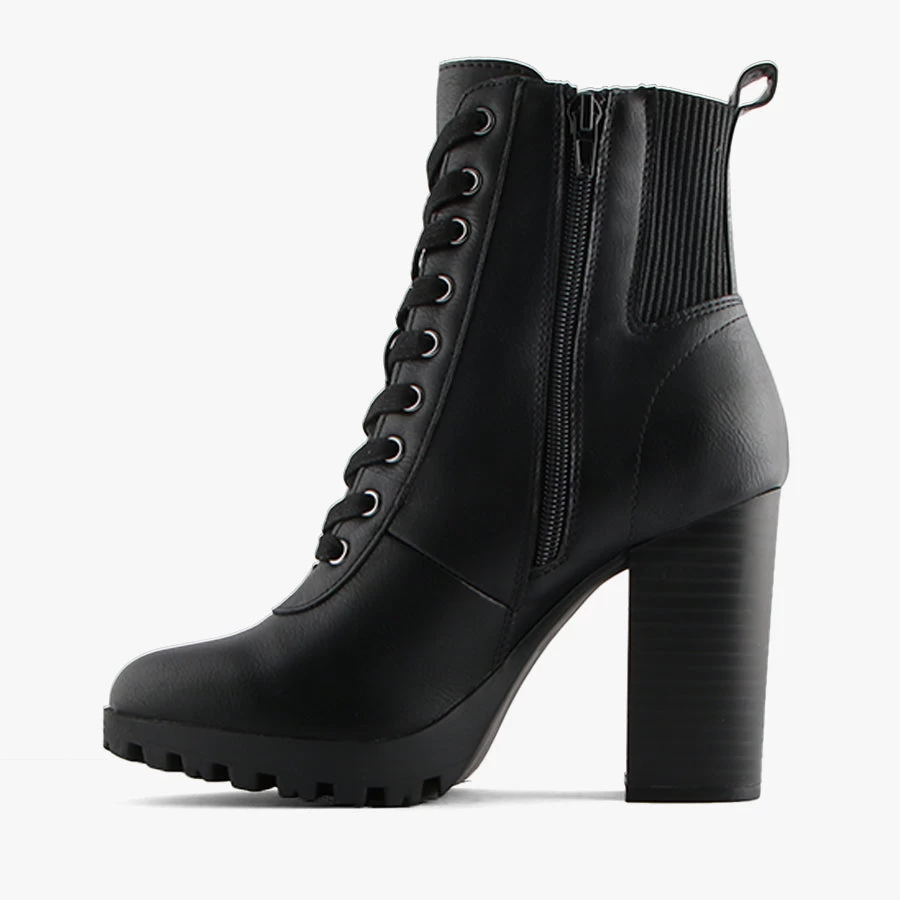 Toga by Pied A Terre is a women’s lace up ankle boot featuring a side zipper on a high stacked heel.
