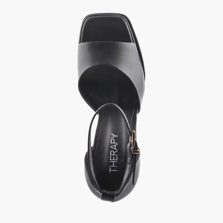 Virtue by Therapy is bringing back those retro vibes. This statement heel features a flared block heel, an on trend square toe design on a statement double platform sole.